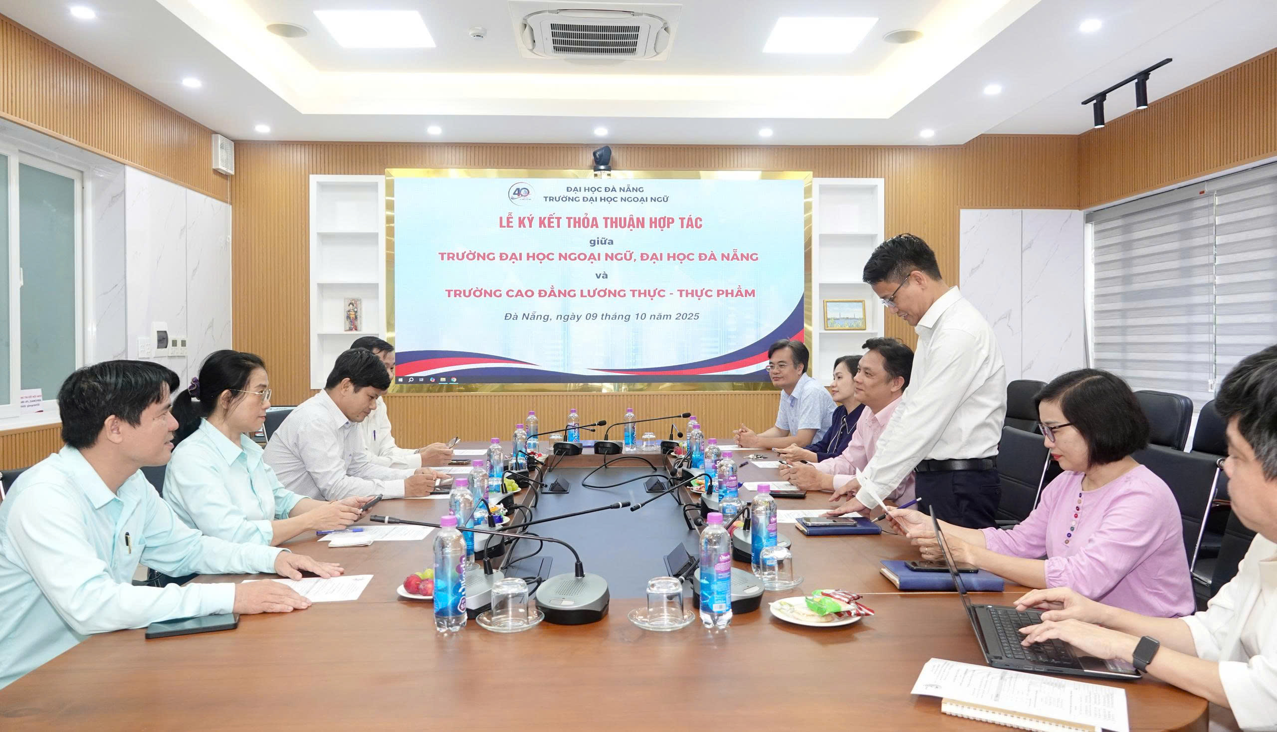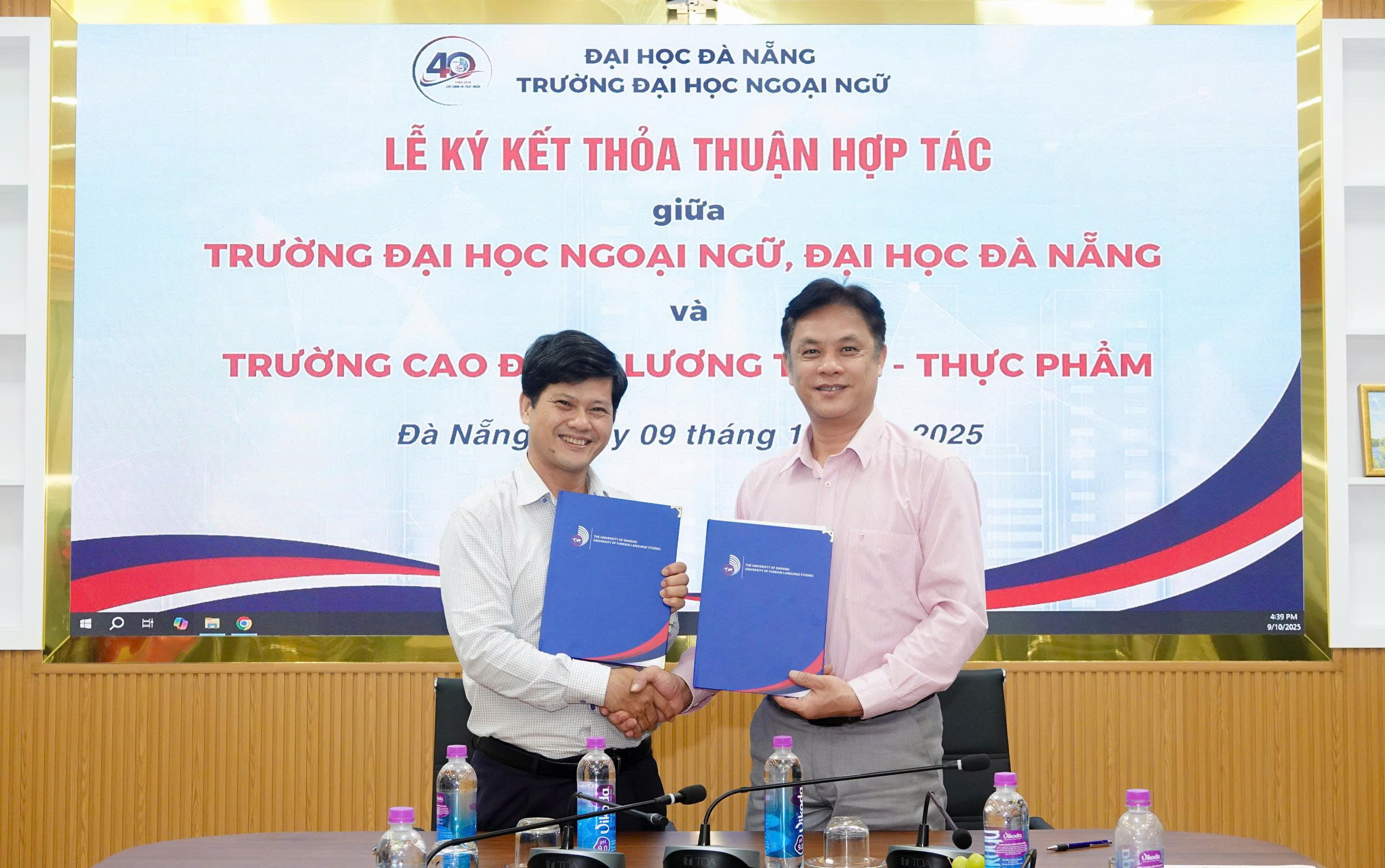 Ký kết Biên bản ghi nhớ hợp tác với Trường Đại học Ngoại ngữ - Đại học Đà NẵngNhằm tăng cường mối quan hệ hợp tác giữa các cơ sở giáo dục trong khu vực miền Trung – Tây Nguyên, đồng thời mở rộng cơ hội học tập, nghiên cứu và giao lưu học thuật cho giảng viên, sinh viên, Trường Cao đẳng Lương thực – Thực phẩm và Trường Đại học Ngoại ngữ – Đại học Đà Nẵng đã tổ chức Lễ ký kết Biên bản ghi nhớ hợp tác (MOU) vào chiều ngày 09/10/2025 tại Trường Đại học Ngoại ngữ – Đại học Đà Nẵng.