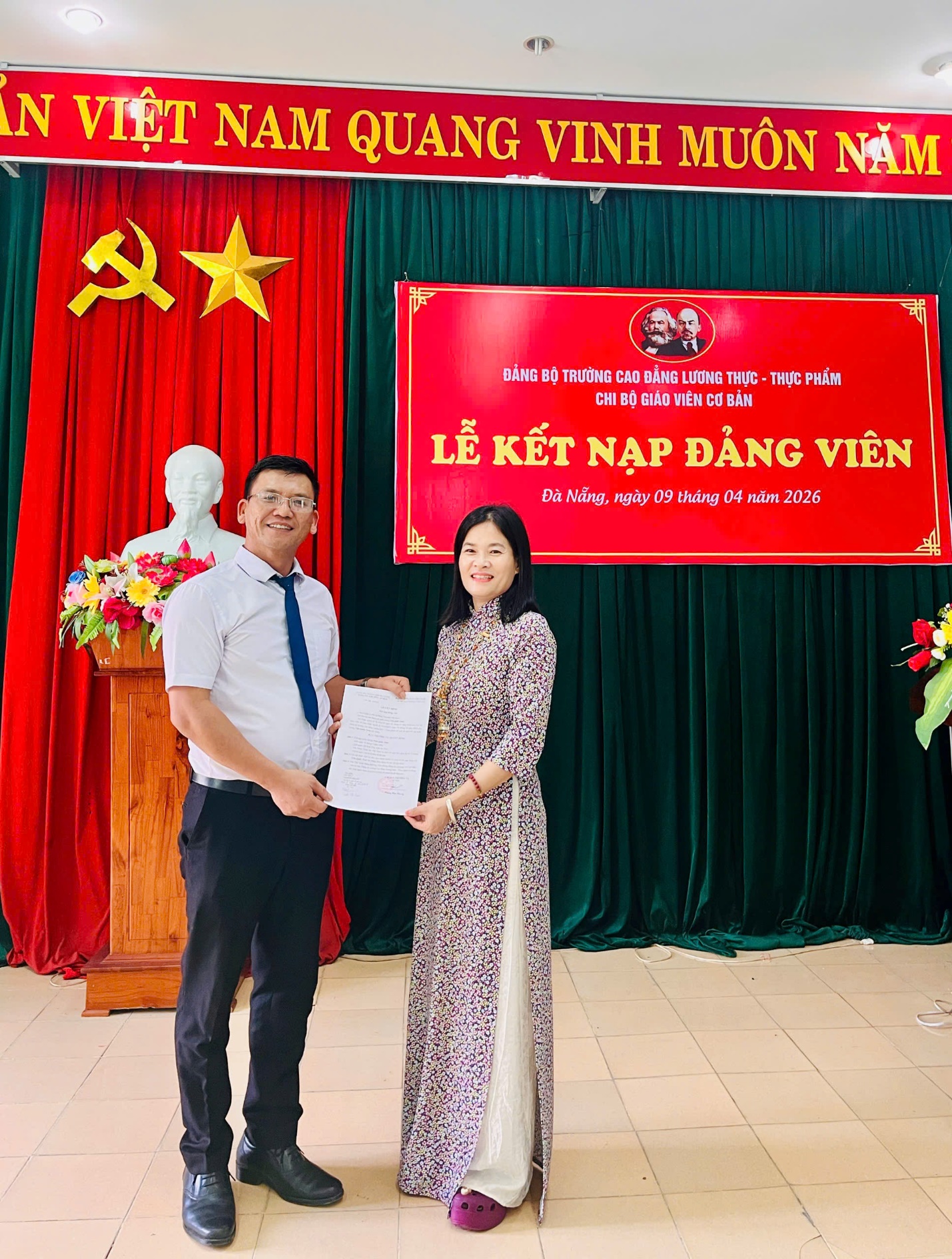 KẾT NẠP ĐẢNG VIÊN MỚI – DẤU ẤN TỪ HAI CHI BỘTrong không khí trang nghiêm, phấn khởi, vừa qua, Chi bộ Khoa Khoa học Cơ bản và Chi bộ Đào tạo – Trường Cao đẳng Lương thực – Thực phẩm đã long trọng tổ chức Lễ kết nạp Đảng viên mới, ghi dấu những bước trưởng thành đầy tự hào của các quần chúng ưu tú.