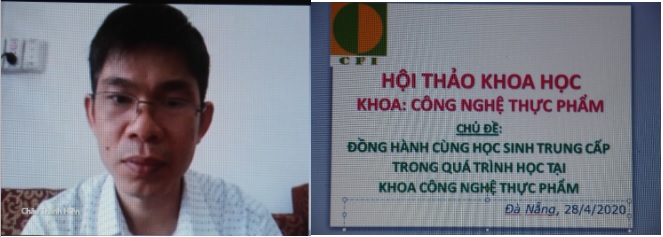 Được sự đồng ý của Ban Giám Hiệu nhà trường, ngày 28/4/2020 Khoa Công nghệ Thực phẩm đã tổ chức hội thảo: “Đồng hành cùng học sinh Trung cấp trong quá trình học tập tại Khoa Công nghệ thực phẩm” bằng hình thức trực tuyến dưới sự chủ trì của TS. Châu Thành Hiền - Trưởng khoa CNTP. Mục đích của hội thảo nhằm chia sẻ những khó khăn của thầy cô trong quá trình tham gia quản lý, giảng dạy đồng thời chia sẻ những kinh nghiệm của các thầy cô về phương pháp giảng dạy, quản lý lớp học cũng như công tác GVCN cho đối tượng học sinh trung cấp tốt nghiệp trung học cơ sở.