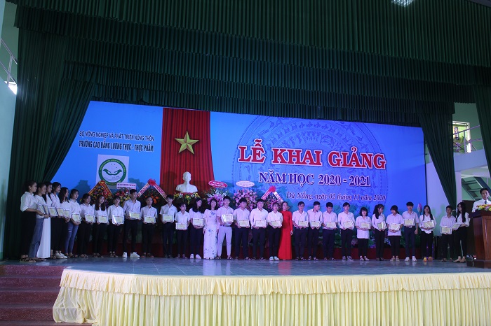 Nhân dịp lễ khai giảng, nhà trường đã tuyên dương khen thưởng 2 HSSV đạt kết quả cao trong kỳ tuyển sinh năm 2020 hiện đang học ngành Kỹ thuật chế biến món ăn và Công nghệ thực phẩm và gần 100 HSSV đã có thành tích trong học tập – rèn luyện trong năm học 2019-2020. Khen thưởng học sinh trung cấp tham gia học văn hóa chương trình Giáo dục thường xuyên vì đã có kết quả học lực khá, giỏi hạnh kiểm tốt.