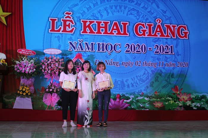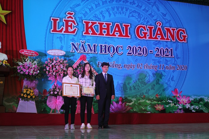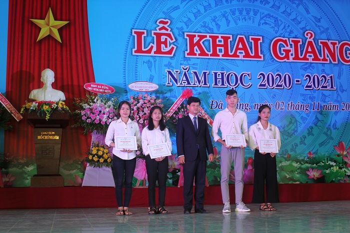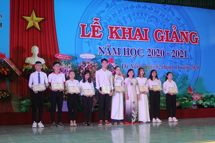 Theo truyền thống, các nhà tài trợ là đại diện Ngân hàng BIDV Đà Nẵng, Công ty TNHH MTV Mai Sơn Organic đã trao những suất học bổng đầy ý nghĩa cho những học sinh, sinh viên có hoàn cảnh khó khăn, vươn lên học tập – rèn luyện tốt. Đây là động lực để các em vượt qua khó khăn hiện tại để tiếp tục phấn đấu hơn nữa trong học tập cũng như trong cuộc sống. Thay mặt nhà trường, Hiệu trưởng đã tặng hoa thay cho lời cảm ơn đến các nhà tài trợ.