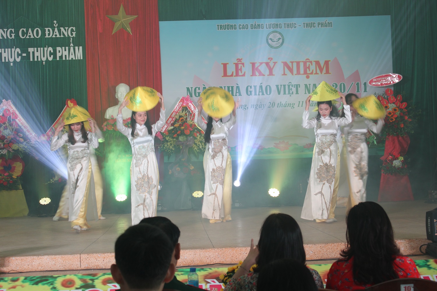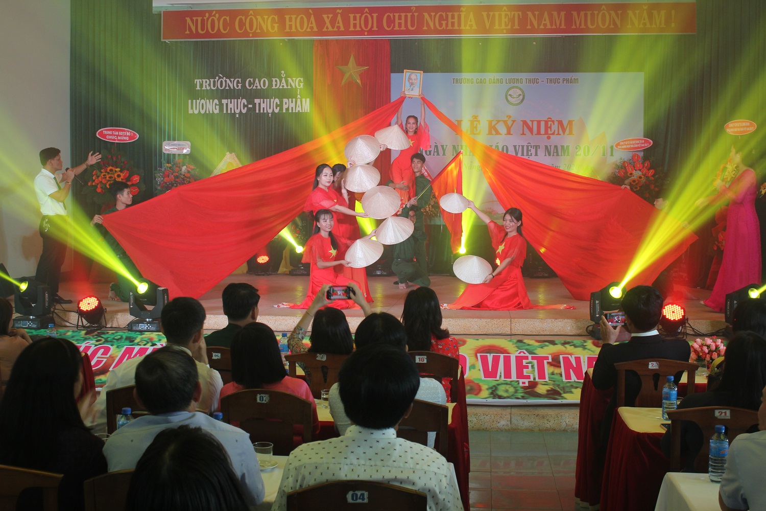 Mở đầu cho buổi lễ kỷ niệm là các tiết mục văn nghệ đặc sắc, sống động chào mừng ngày 20/11 do tập thể CBVC, GV và các em HSSV thể hiện. Chương trình là những lời ca tiếng hát ca ngợi tình yêu quê hương đất nước, với những điệu múa uyển chuyển, chứa đầy cảm xúc nhằm truyền tải niềm tự hào về đất nước, về mái trường thân yêu và đó cũng chính là những món quà tinh thần vô giá gửi tới các Thầy cô giáo nhân ngày 20/11, làm đẹp thêm giá trị nhân văn “Tôn sư trọng đạo” thấm nhuần trong mỗi thế hệ học sinh sinh viên.