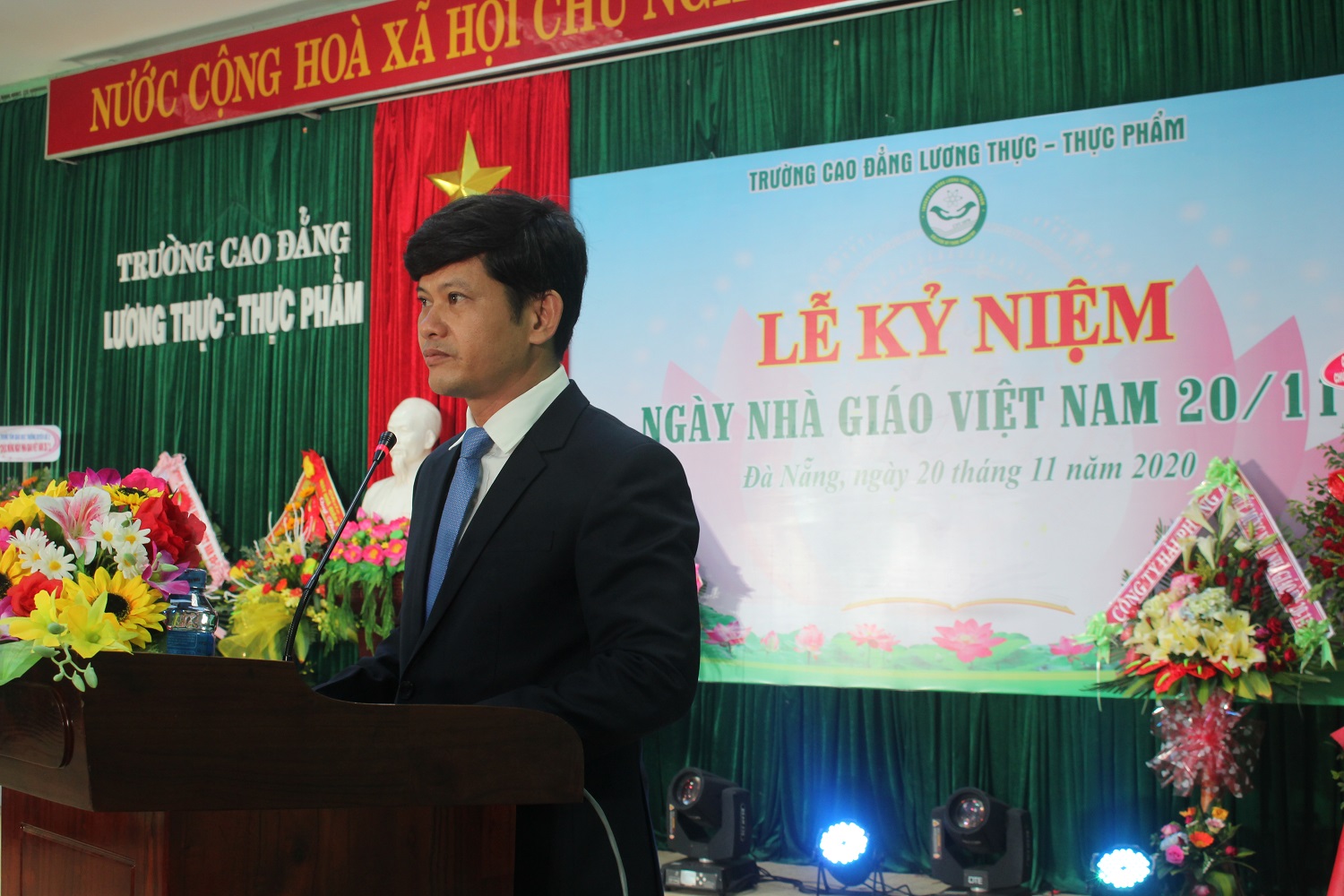 Phát biểu tại buổi lễ, thầy giáo Đỗ Chí Thịnh - Hiệu trưởng nhà trường đã nhiệt liệt chúc mừng toàn thể giáo viên, viên chức và HSSV nhân ngày nhà giáo Việt Nam 20/11, thầy chia sẻ: “Mỗi dịp chào đón 20/11, các thầy cô giáo và những người làm công tác giáo dục đều cảm thấy vinh dự và tự hào hơn với truyền thống cuả ngành. Càng vinh dự và tự hào, chúng ta càng ý thức được trách nhiệm lớn lao thì càng phải phấn đấu để đào tạo nguồn nhân lực có chất lượng cao đáp ứng thời kỳ đẩy mạnh Công nghiệp hóa, hiện đại hóa đất nước. Ban giám hiệu nhà trường xin ghi nhận sự đóng góp đầy trách nhiệm của toàn thể công chức viên chức nhà trường, đặc biệt xin cảm ơn toàn thể thầy giáo, cô giáo của nhà trường đã ngày đếm tận tụy, góp phần đào tạo ta đội ngũ lao động đủ đức, đủ tài, đảm nhận những vai trò trọng yếu trong sự nghiệp xây dựng và phát triển đất nước. Thầy cô là chiến sĩ tiên phong trong mặt trận giáo dục đào tạo”