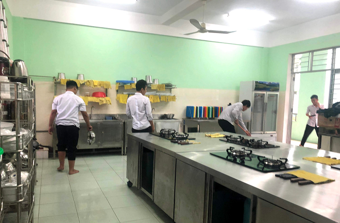 Không chỉ tự tay chế biến các món ăn, mỗi học sinh sinh viên còn chung tay trong công tác vệ sinh phòng thực hành sau khi hoàn thành mỗi buổi học. Việc này không chỉ giữ gìn vệ sinh chung tại phòng thực hành mà còn nâng cao ý thức trách nhiệm giữ gìn an toàn vệ sinh thực phẩm, một trong những yêu cầu bắt buộc, cần thiết đối với một đầu bếp chuyên nghiệp trong tương lai