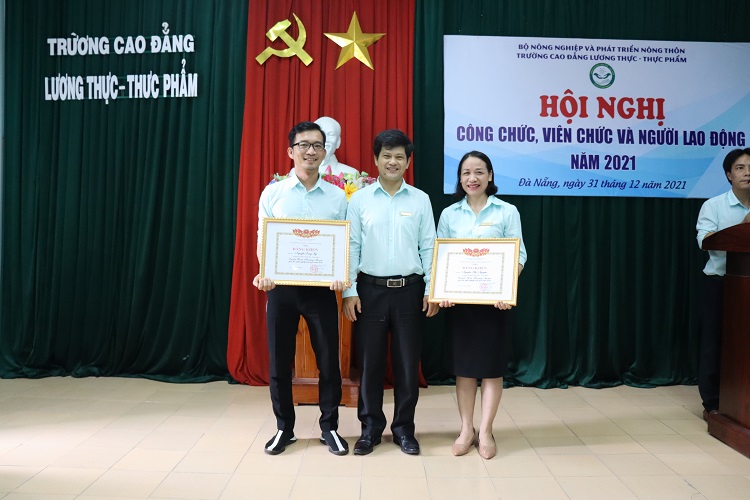 Trong năm học qua, dưới sự lãnh đạo của Đảng ủy, sự điều hành của Bạn giám hiệu và Hội đồng trường, Nhà trường đã hoàn thành xuất sắc nhiệm vụ được giao, vinh dự đón nhận Bằng khen và Cờ thi đua của Bộ trưởng bộ Nông nghiệp và PTNT, Cờ thi đua của UBND thành phố Đà Nẵng cho đơn vị Xuất sắc năm 2021. Nhân dịp này, Nhà trường cũng đã tuyên dương, khen thưởng thưởng cho 4 đơn vị đạt danh hiệu tập thể Lao động xuất sắc, 1 tập thể và 7 cá nhân hoàn thành xuất sắc nhiệm vụ tuyển sinh năm 2021, 16 cá nhân đạt danh hiệu Chiến sỹ thi đua cơ sở.