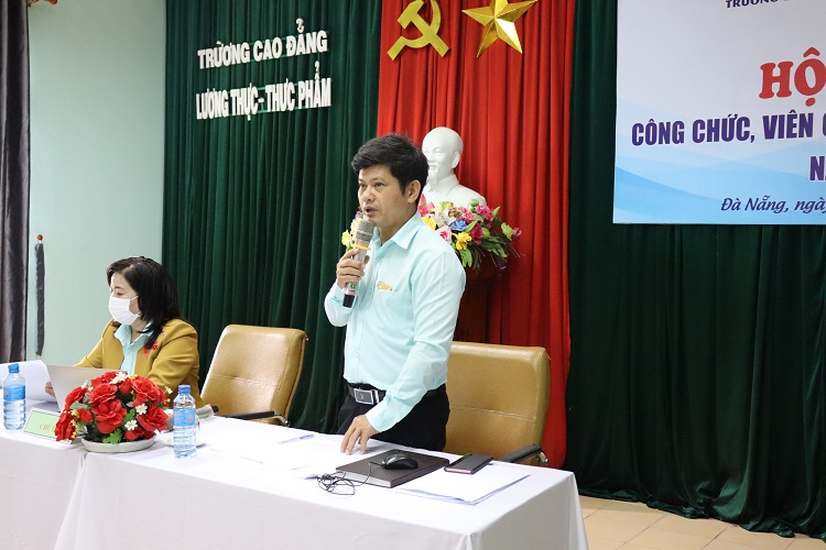 Hội nghị đã nghe Hiệu trưởng nhà trường đánh giá và kiểm điểm trách nhiệm của người đứng đầu đơn vị trong việc thực hiện kế hoạch công tác năm 2021, những định hướng trọng tâm tập trung thực hiện năm 2022. Năm 2021, mặc dù chịu nhiều ảnh hưởng của đại dịch Covid 19, nhưng dưới sự đồng tâm, trách nhiệm và đoàn kết, nỗ lực của toàn thể CBVC, nhà trường đã hoàn thành tốt nhiệm vụ đặt ra với những thành tích nổi bật: Hoàn thành Đánh giá ngoài công tác Kiểm định chất lượng giáo dục; Công tác tuyển sinh đạt trên 100% chỉ tiêu được giao; Đẩy mạnh ứng dụng CNTT trong công tác giảng dạy và quản lý giúp cho mọi hoạt động của nhà trường không bị gián đoạn trong tình hình dịch bệnh diễn biến phức tạp; Mở rộng thêm quan hệ hợp tác với nhiều đối tác trong và ngoài nước trong hoạt động đào tạo, nghiên cứu và chuyển giao công nghệ như: Học viên ngôn ngữ quốc tế Cosmos, trường Cao đẳng Pusan Hàn Quốc, Công ty TNHH Thực phẩm Family Sauce, Công ty cổ phần Bếp Tổng...; Các hoạt động khác của nhà trường đều hoàn thành tốt nhiệm vụ đặt ra.