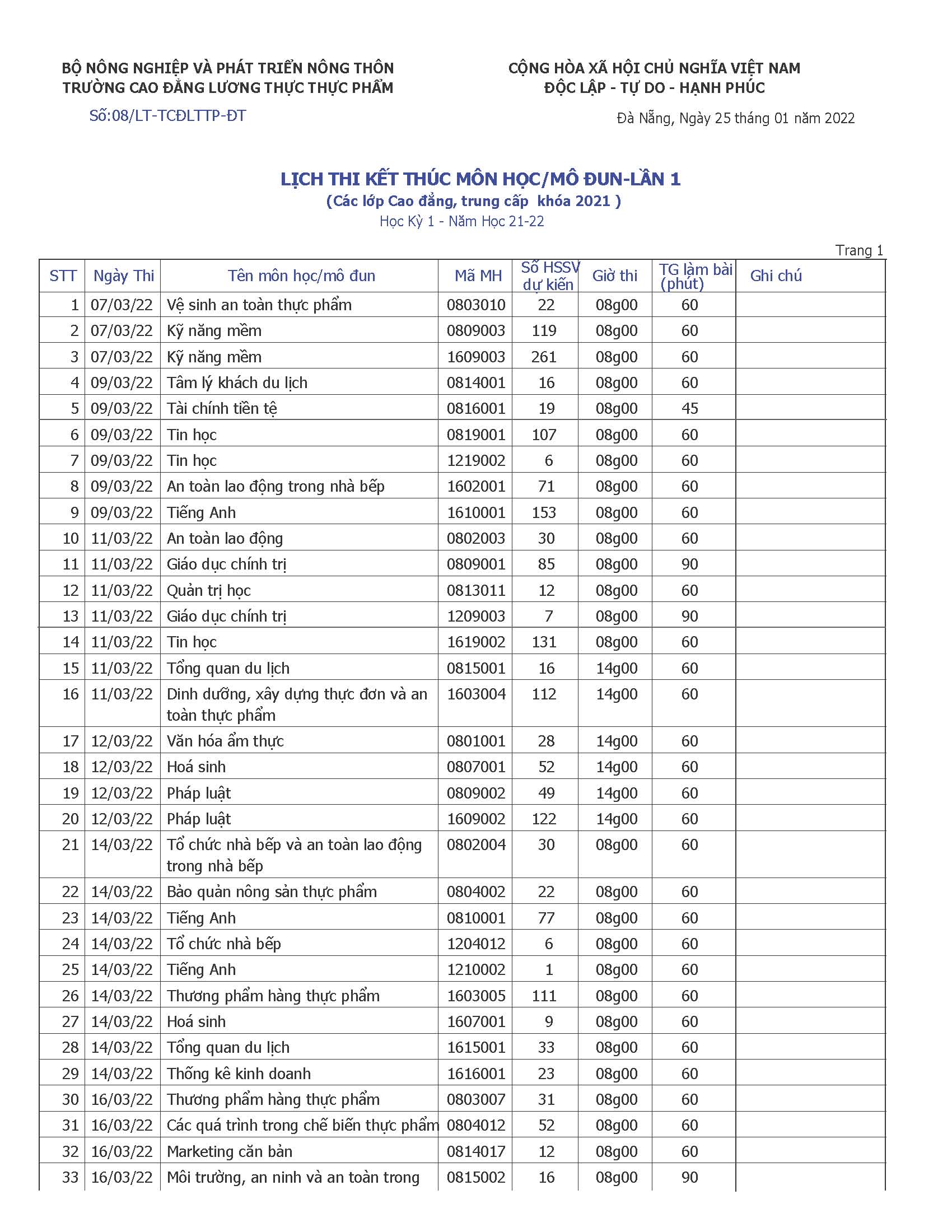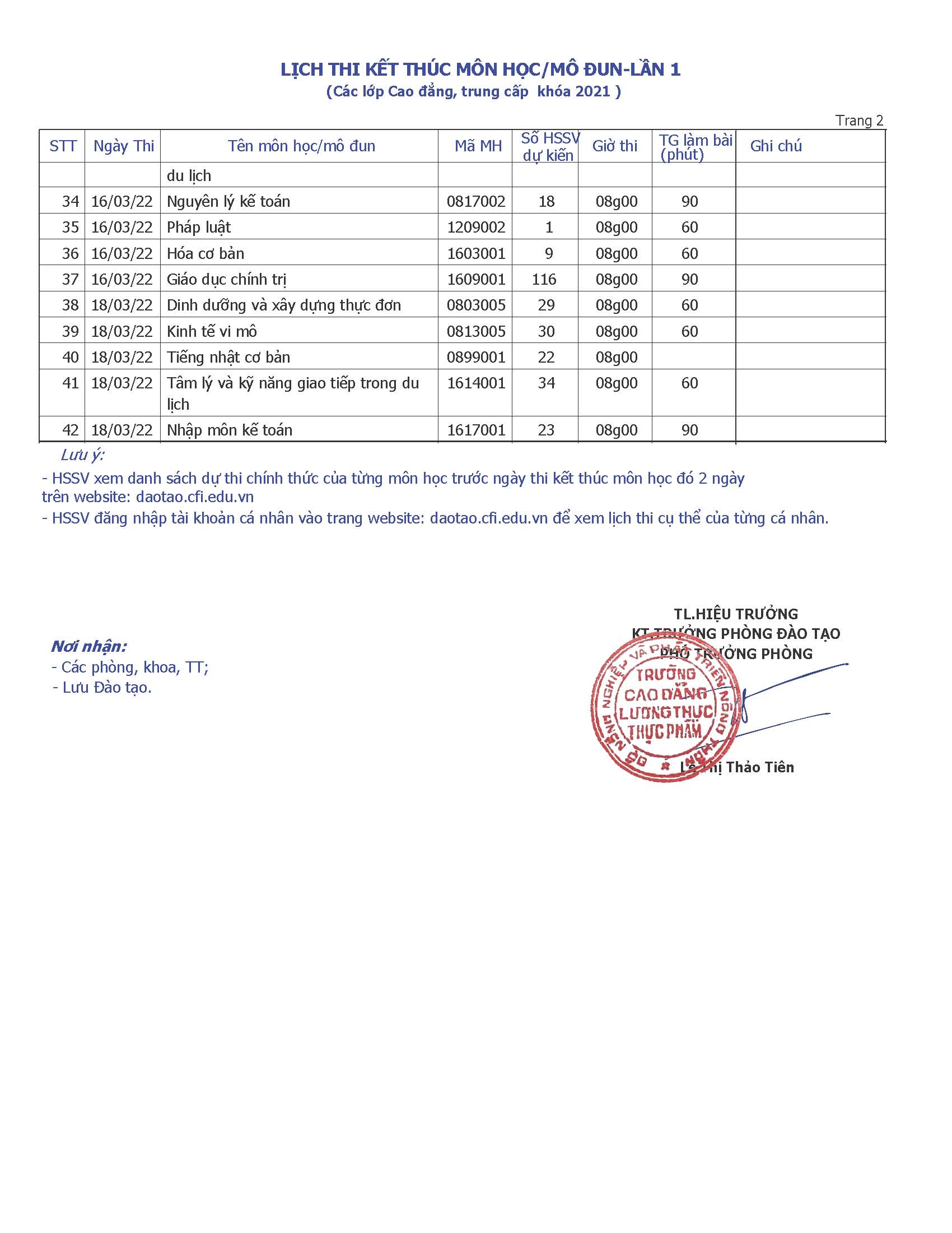Lịch thi kết thúc mô đun môn học lần 1(Các lớp Cao đẳng, Trung cấp khóa 2021) Lịch thi kết thúc mô đun môn học lần 1(Các lớp Cao đẳng, Trung cấp khóa 2021)