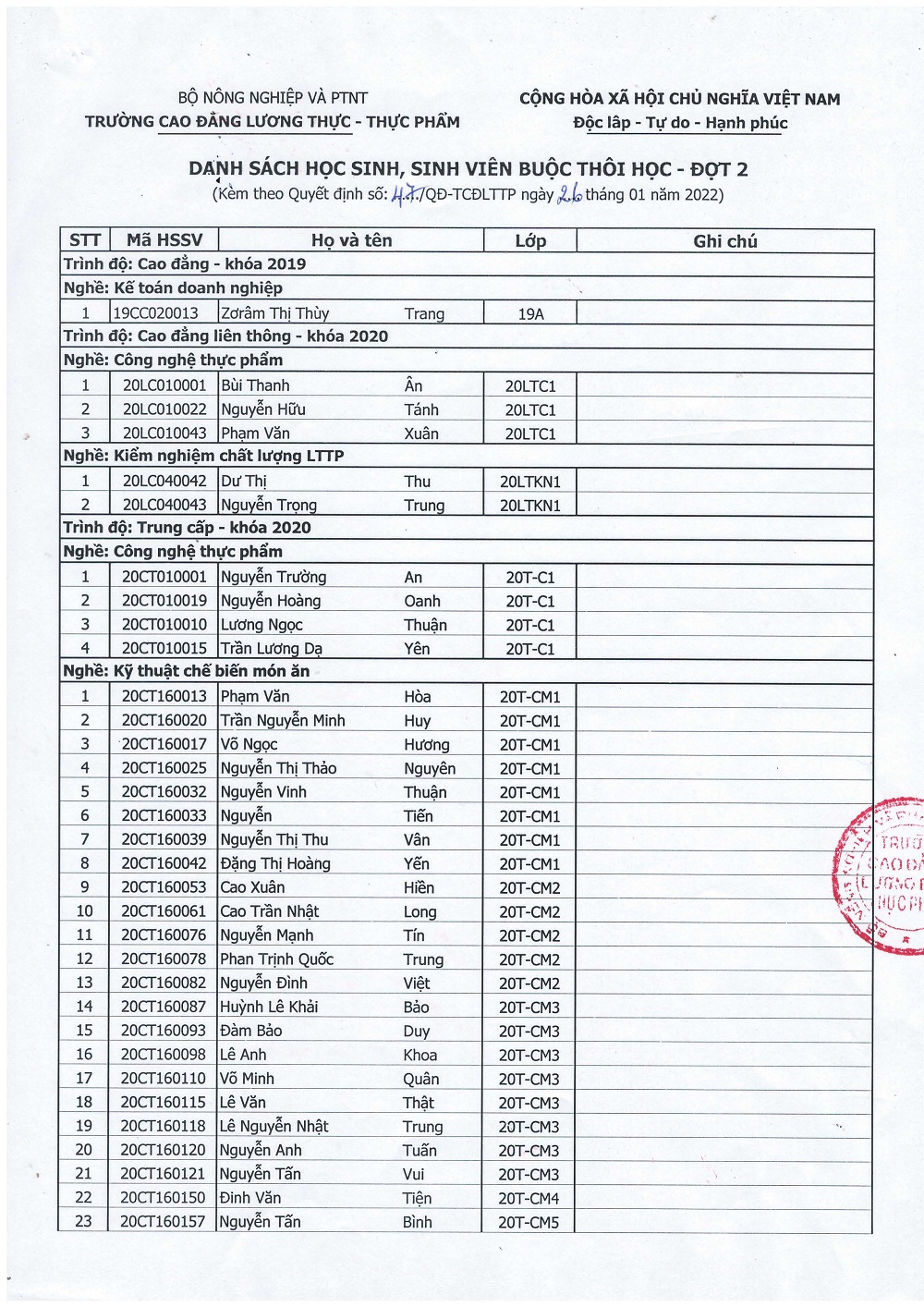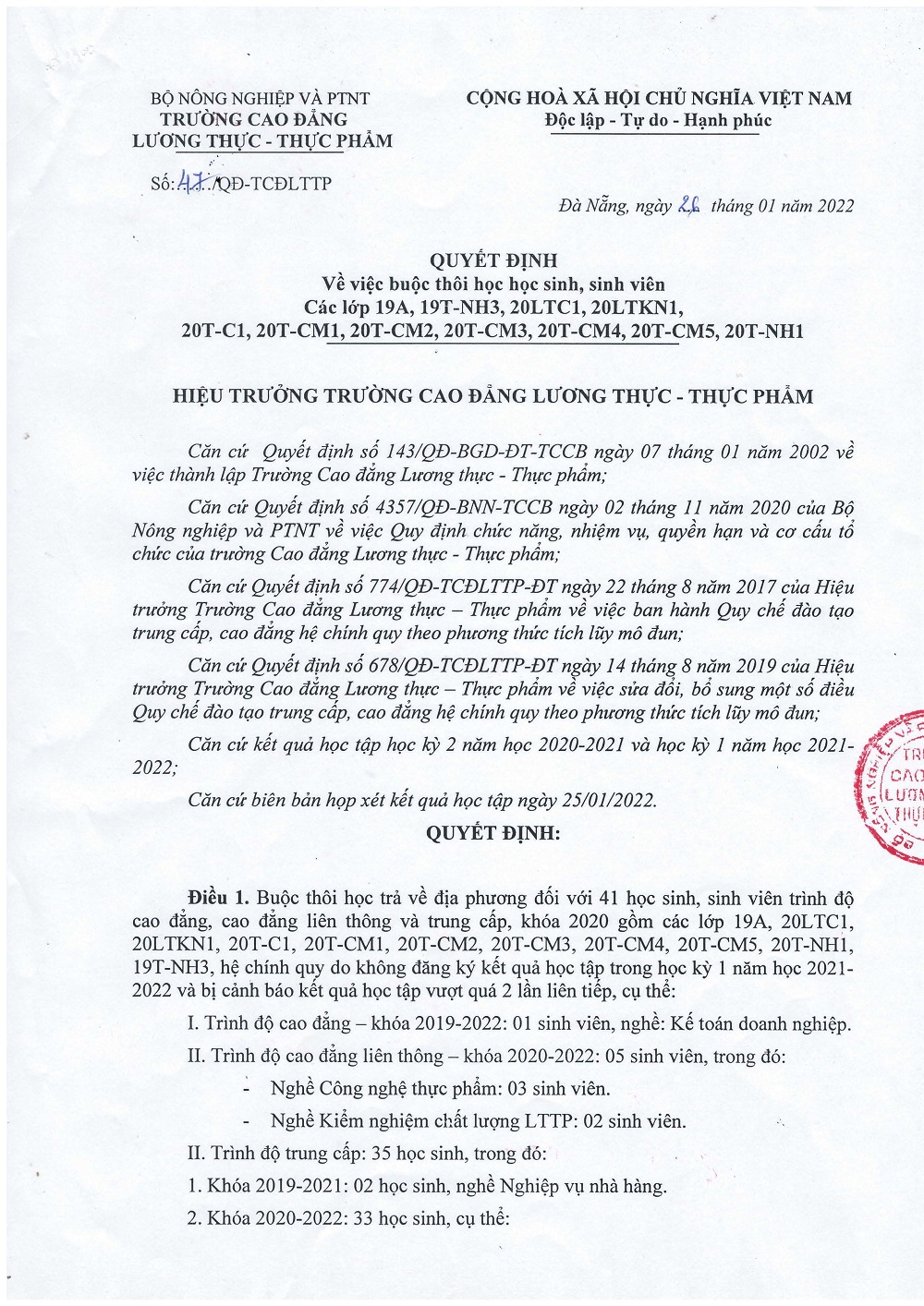 Quyết định buộc thôi học HSSV do không đăng ký học tập học kỳ 1 năm học 2021-2022 và bị cảnh cáo học tập quá 2 lần Quyết định buộc thôi học HSSV do không đăng ký học tập học kỳ 1 năm học 2021-2022 và bị cảnh cáo học tập quá 2 lần