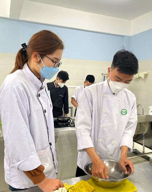 Học tập cùng chuyên gia – một cơ hội không nhỏ trong việc tăng cường tiếp nhận những kỹ năng, những kinh nghiệm thực tế về nghề bếp, phục vụ rất nhiều cho nghề nghiệp của HSSV sau này.