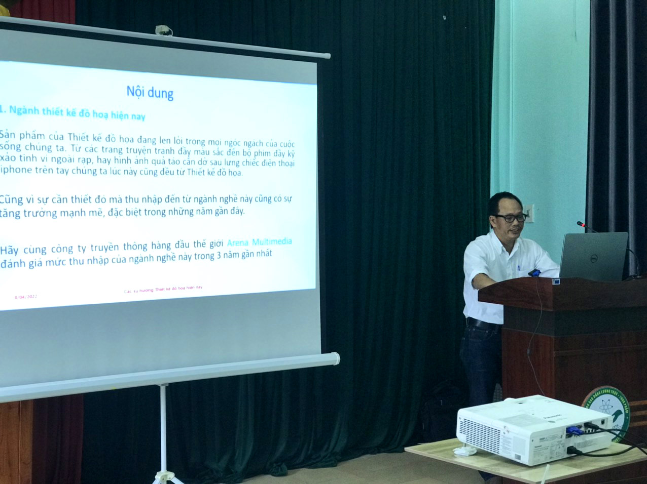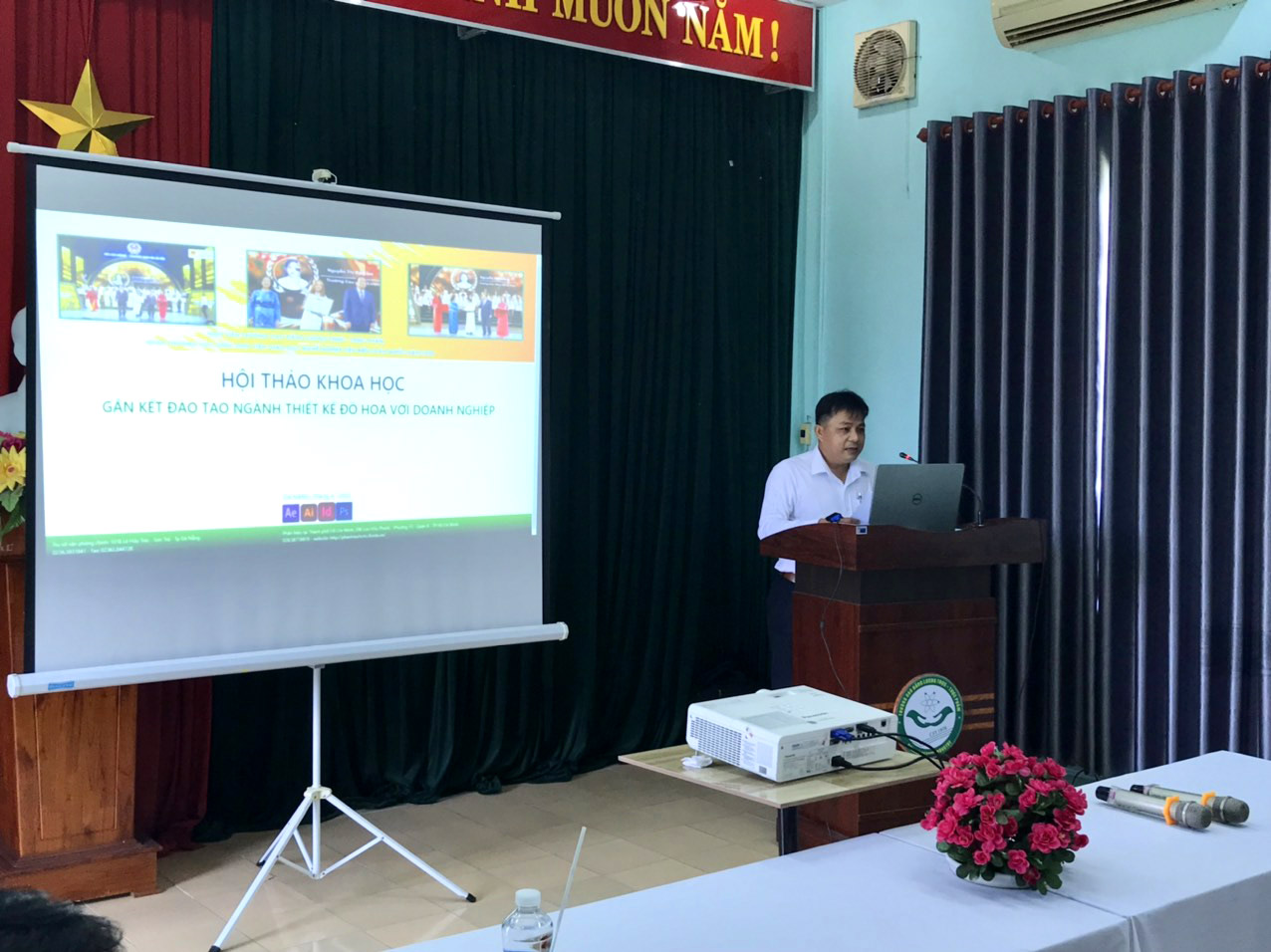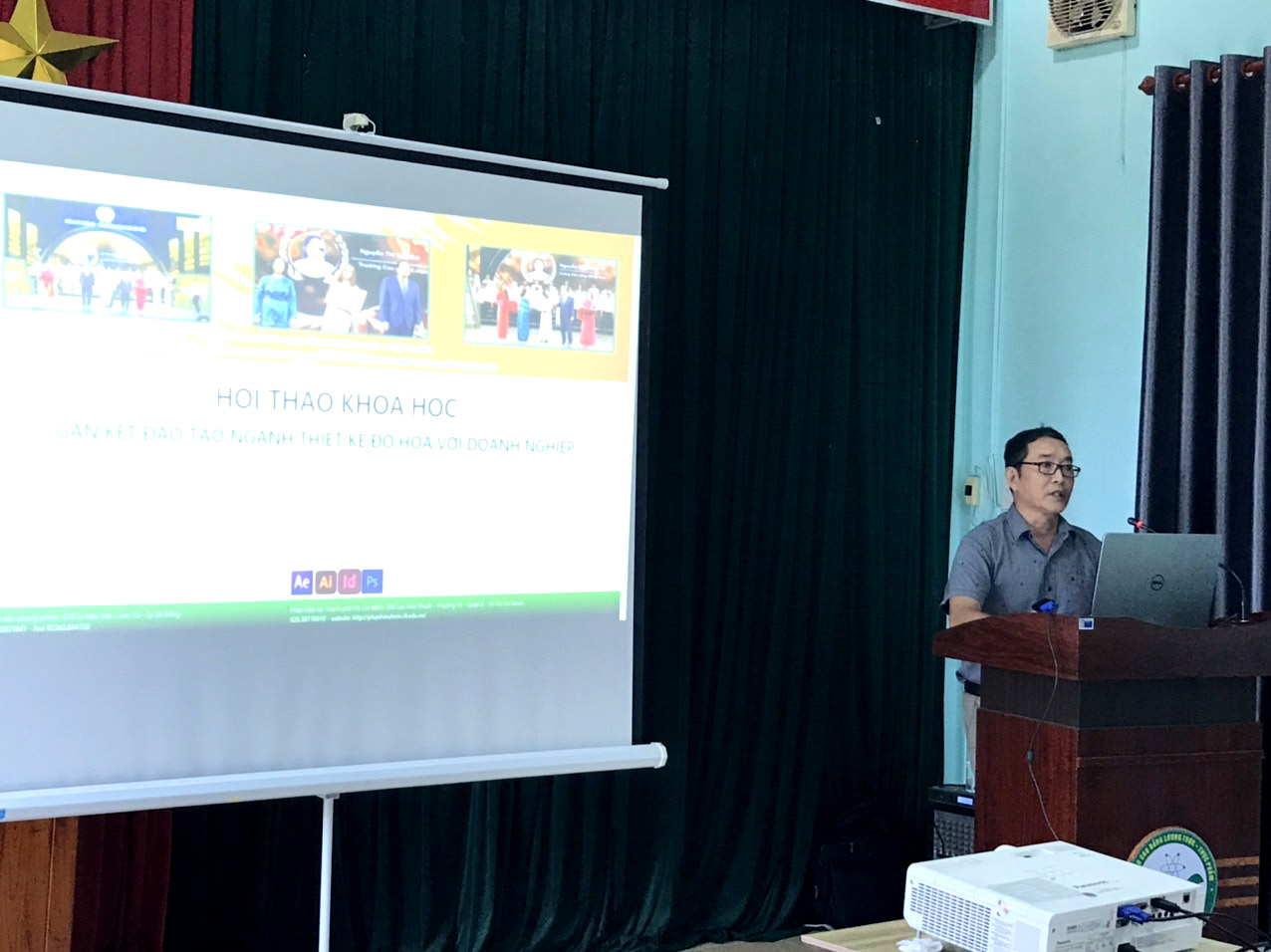Trong buổi hội thảo Ông Lê Văn Hoàn, Giám đốc Công ty cổ phần tư vấn thiết kế xây dựng GreenLight đã phát biểu, trao đổi về xu hướng và nhu cầu nguồn nhân lực ngành Thiết kế Đồ hoạ trong giai đoạn hiện nay. Ông cũng sẳn sàng hợp tác, giúp đỡ nguồn thực tập cho HSSV của trường đối với ngành Thiết kế Đồ hoạ.