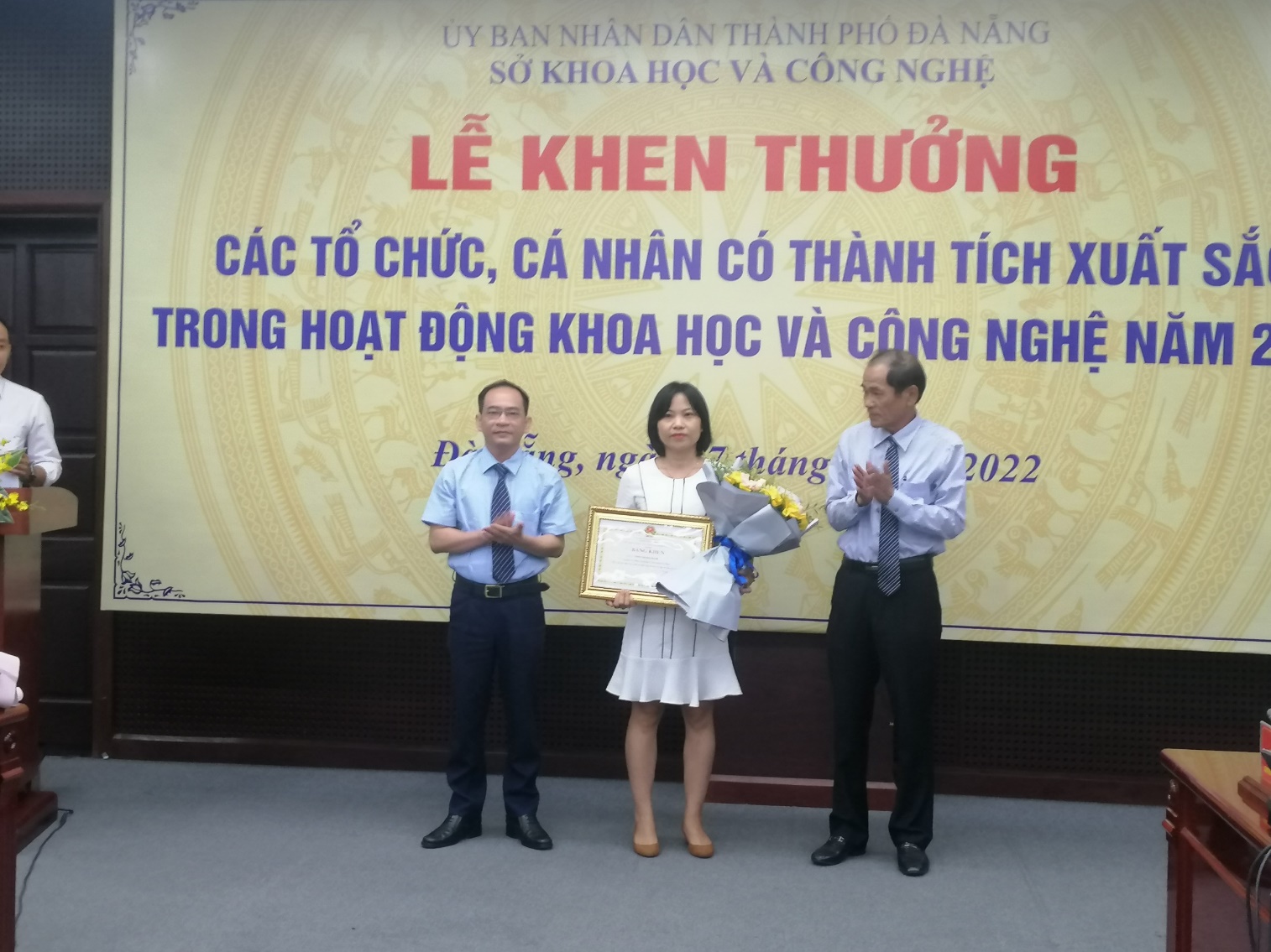 Hình 3: Cô Tống Thị Hải Hạnh (giảng viên phòng Kiểm định và BĐCL) nhận Bằng khen do UBND Thành phố Đà Nẵng trao tặng các tác giả đã có bài báo khoa học xuất sắc được công bố trên tạp chí khoa học uy tín (Tạp chí Marine Policy).
