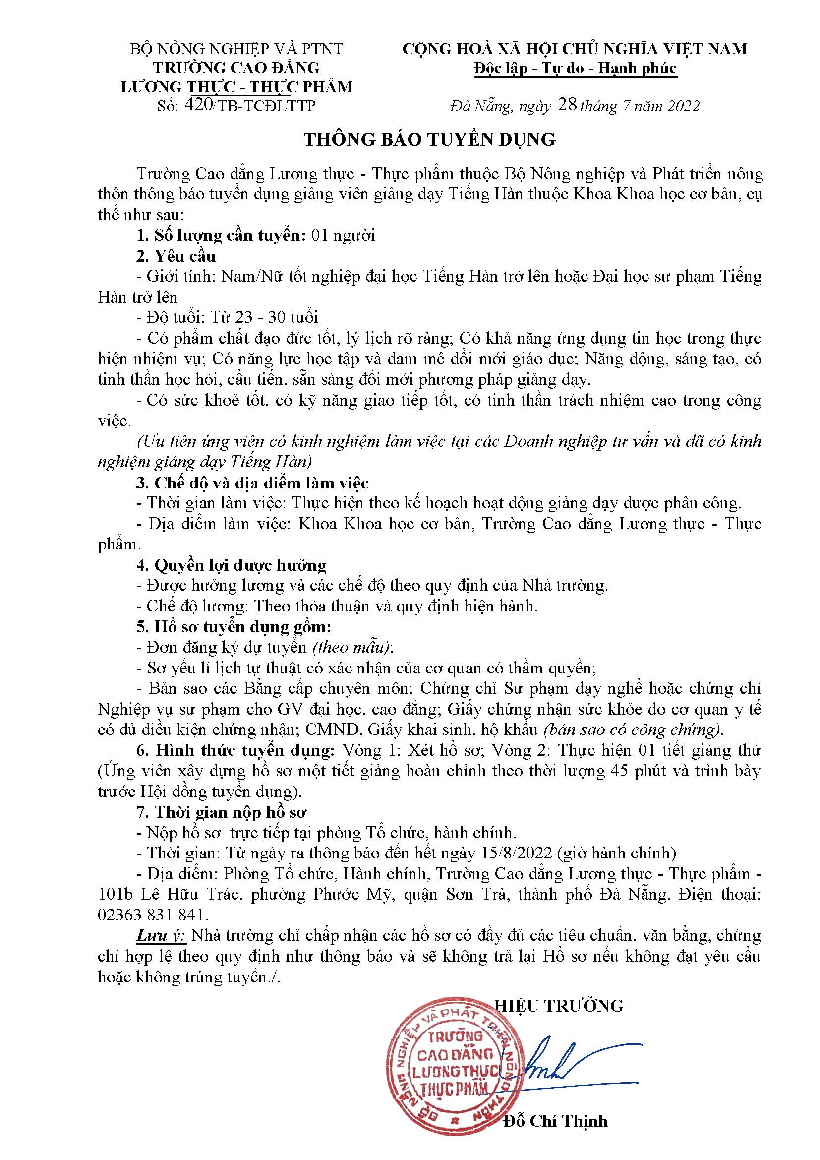 Thông tin tuyển dụng Giảng viên giảng dạy tiếng Hàn Ứng viên tải mẫu đơn Đăng ký dự tuyển tại đây
