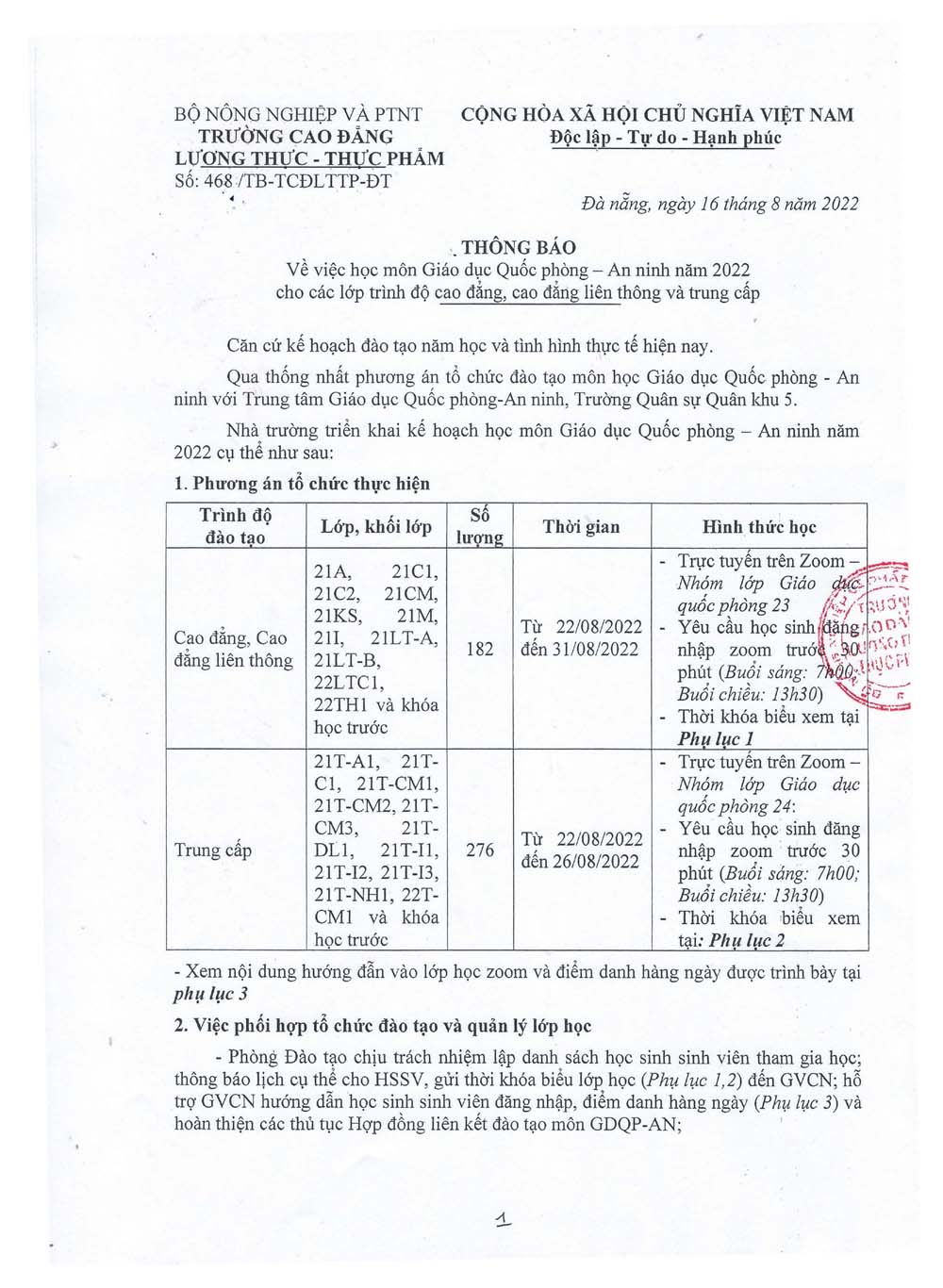 Thông báo lịch học Giáo dục quốc phòng - An ninh năm 2022Lưu ý: Lịch học cụ thể, Thông tin đăng nhập học trực tuyến sẽ được gửi đến các lớp
