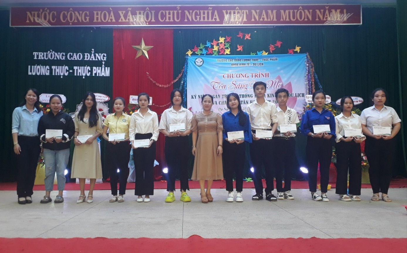 Đặc biệt, chương trình đã trao 11 suất học bổng cho các HSSV học giỏi vượt khó, đây là món quà hết sức ý nghĩa của anh Đường Xuân Dũng – Cựu Sinh viên 05M – hiện nay là Trưởng phòng kho vận công ty sữa TH True Milk dành cho các em HSSV khoa Kinh tế - Du lịch. Món quà của anh là nguồn động lực tinh thần giúp cho các em thêm kiên trì, cố gắng học tập thật tốt, là đôi cánh giúp cho ước mơ của các em bay cao, bay xa hơn nữa, tiến dần đến một tương lai tươi sáng và tốt đẹp hơn.