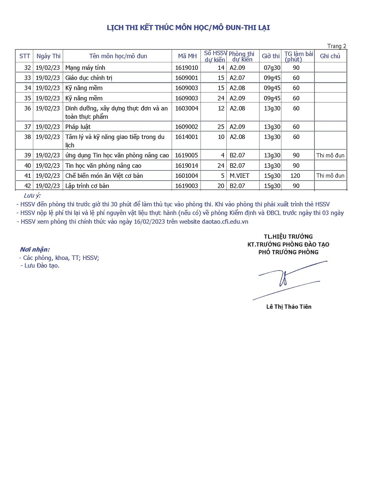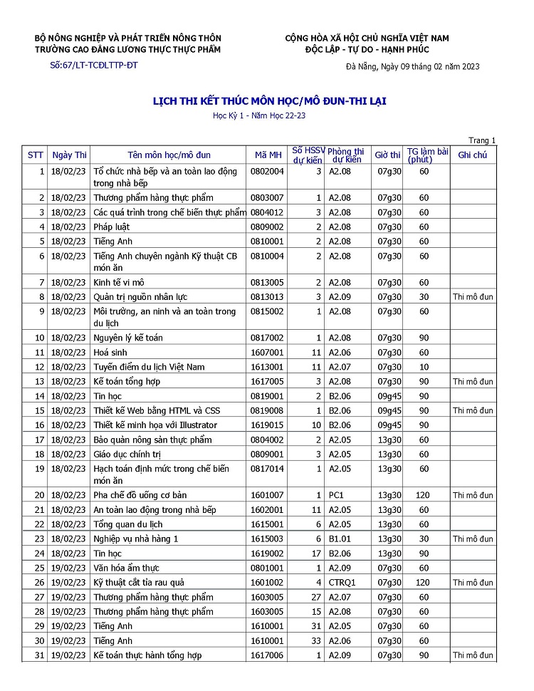 Lịch thi kết thúc Mô đun/Môn học - Thi lại - Học kỳ 1 năm học 2022-2023 Lịch thi kết thúc Mô đun/Môn học - Thi lại - Học kỳ 1 năm học 2022-2023