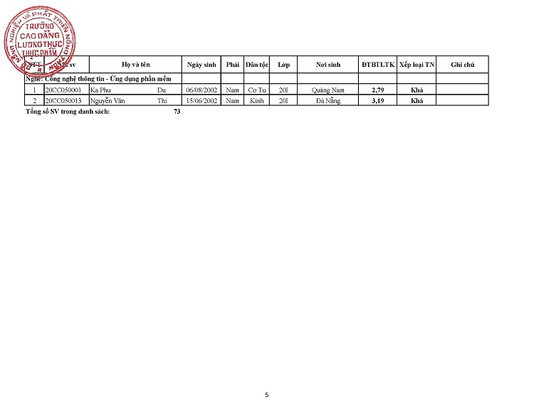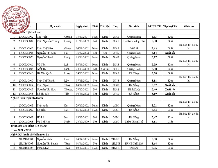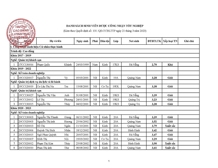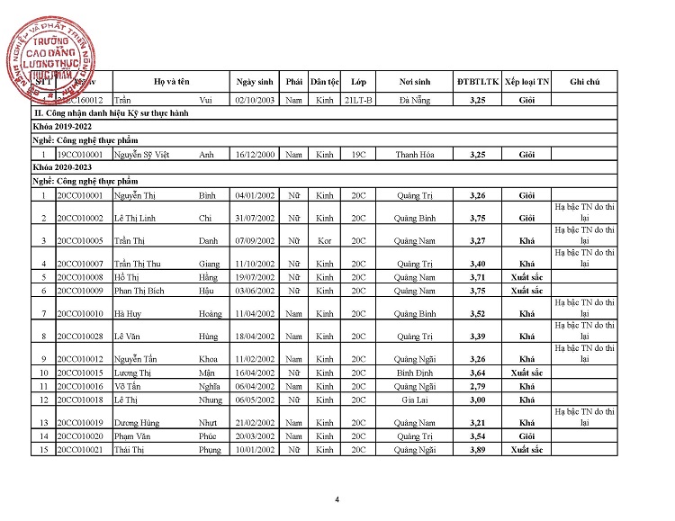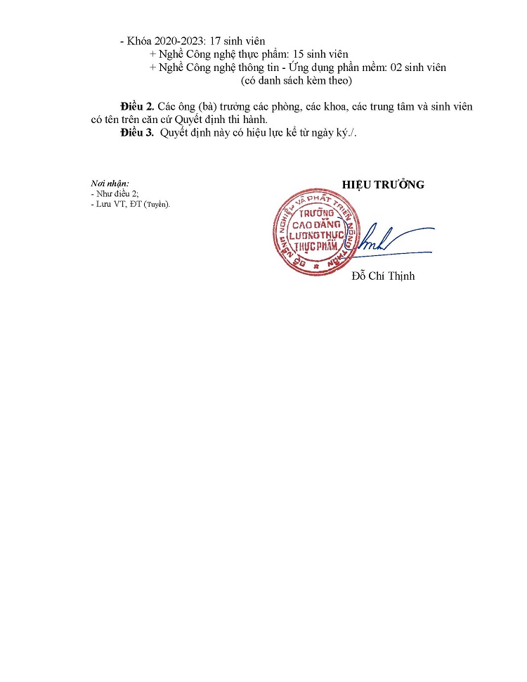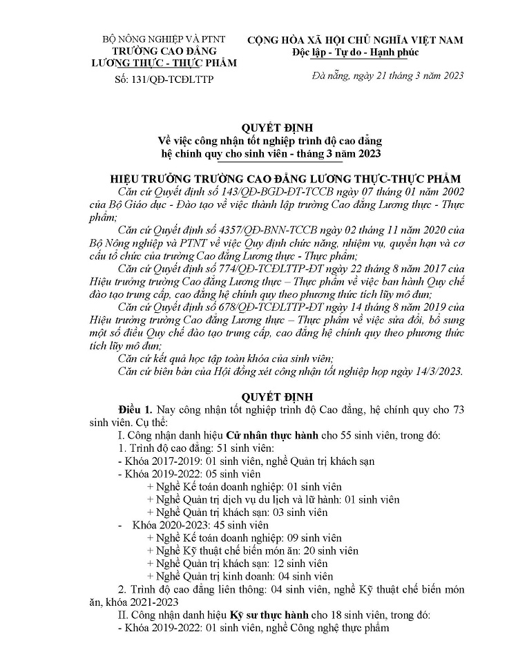 Quyết định công nhận tốt nghiệp trình độ Cao đẳng tháng 3-2023