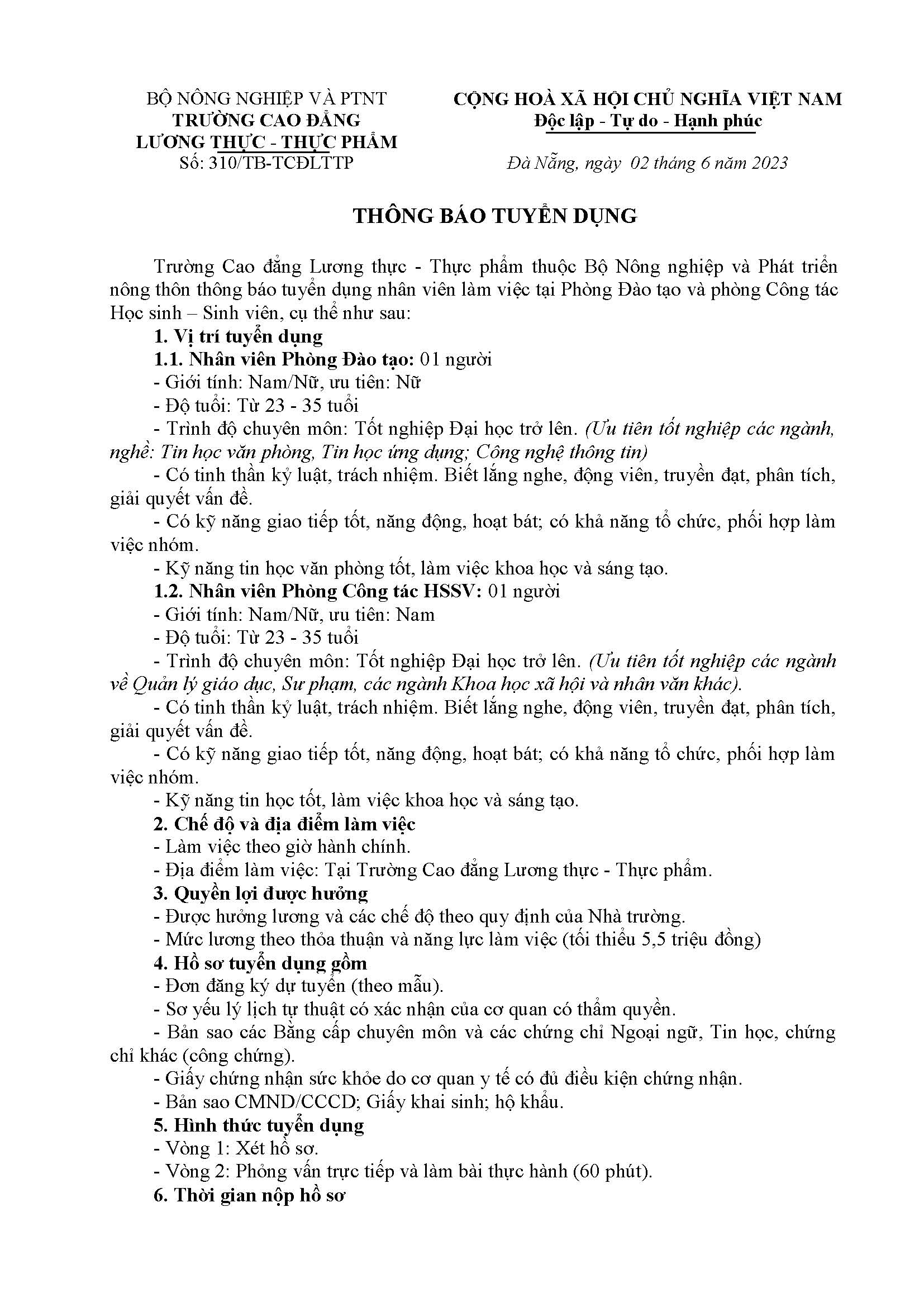 Thông báo tuyển dụng nhân sự