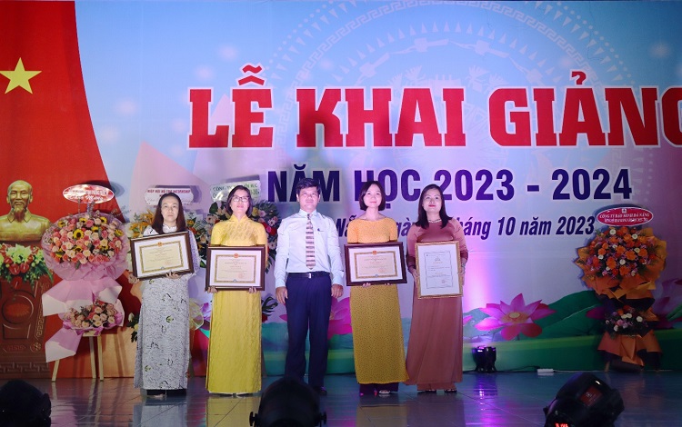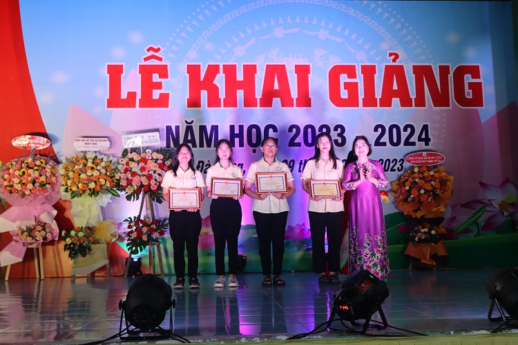 Những tập thể lớp xuất sắc, tiên tiến được thầy giáo Đỗ Chí Thịnh trao thưởng tại Lễ khai giảng