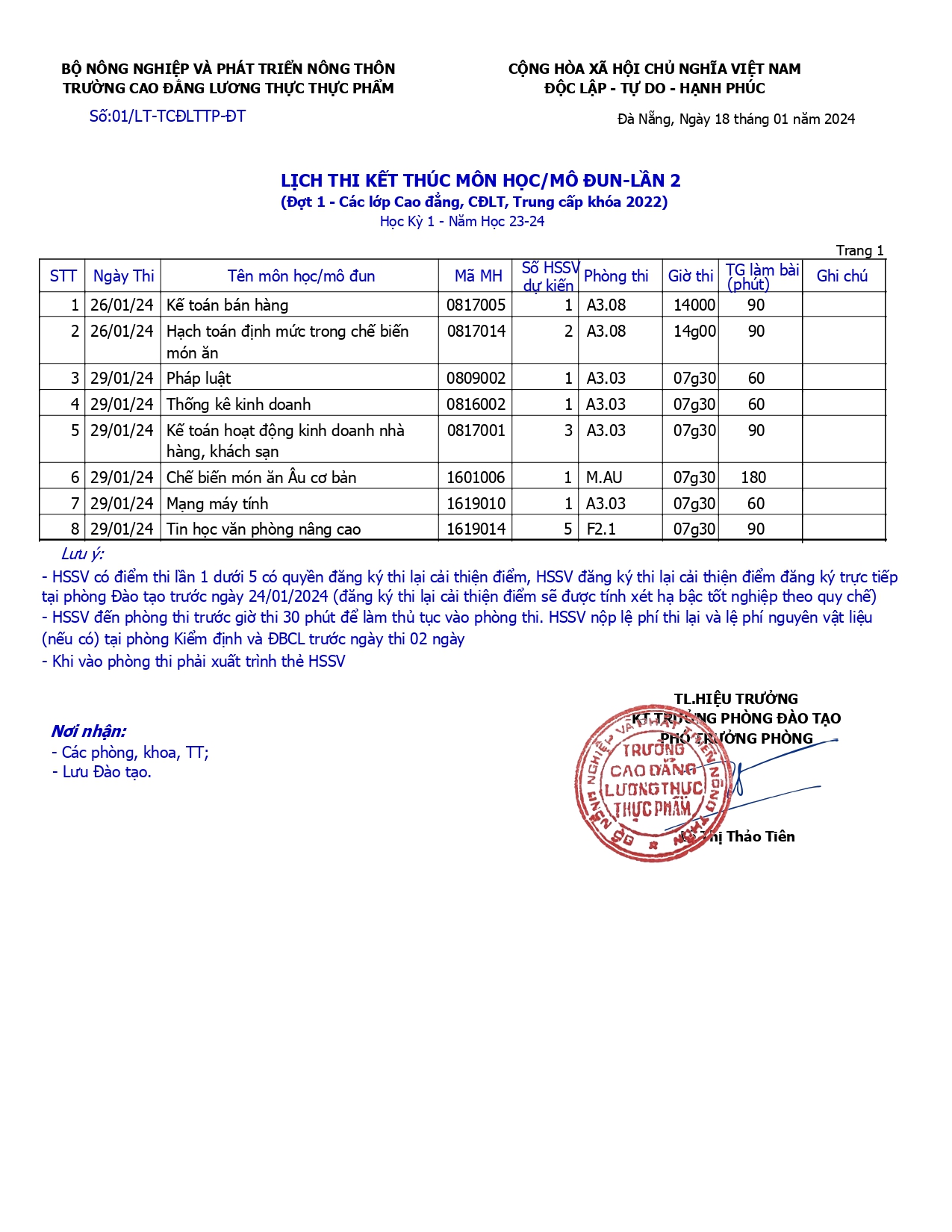 Thông báo lịch thi kết thúc mô đun môn học lần 2