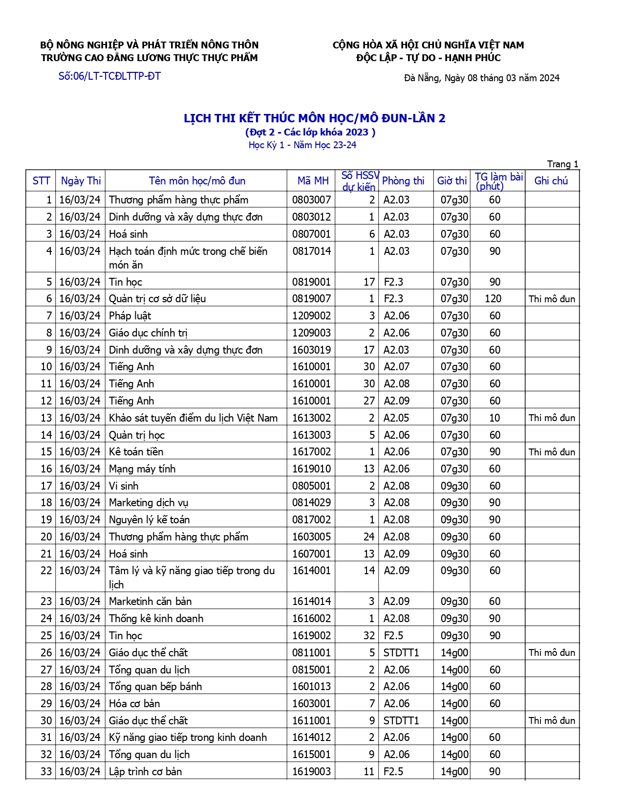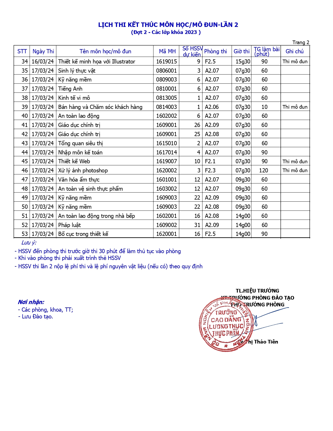 Lịch thi kết thúc mô đun/môn học lần 2 - Học kỳ 1 năm học 2023-2024 Lịch thi kết thúc mô đun/môn học lần 2 - Học kỳ 1 năm học 2023-2024