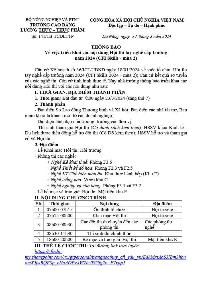 Triển khai Hội thi tay nghề cấp trường năm 2024 - CFI Skills - Mùa 2 Triển khai Hội thi tay nghề cấp trường năm 2024 - CFI Skills - Mùa 2
