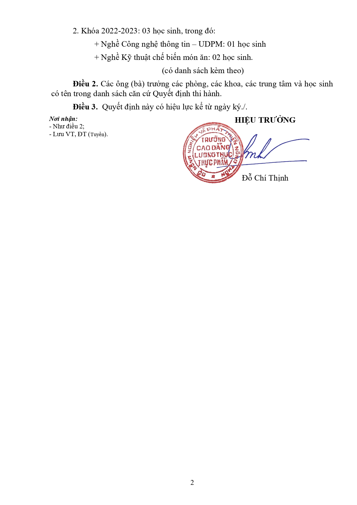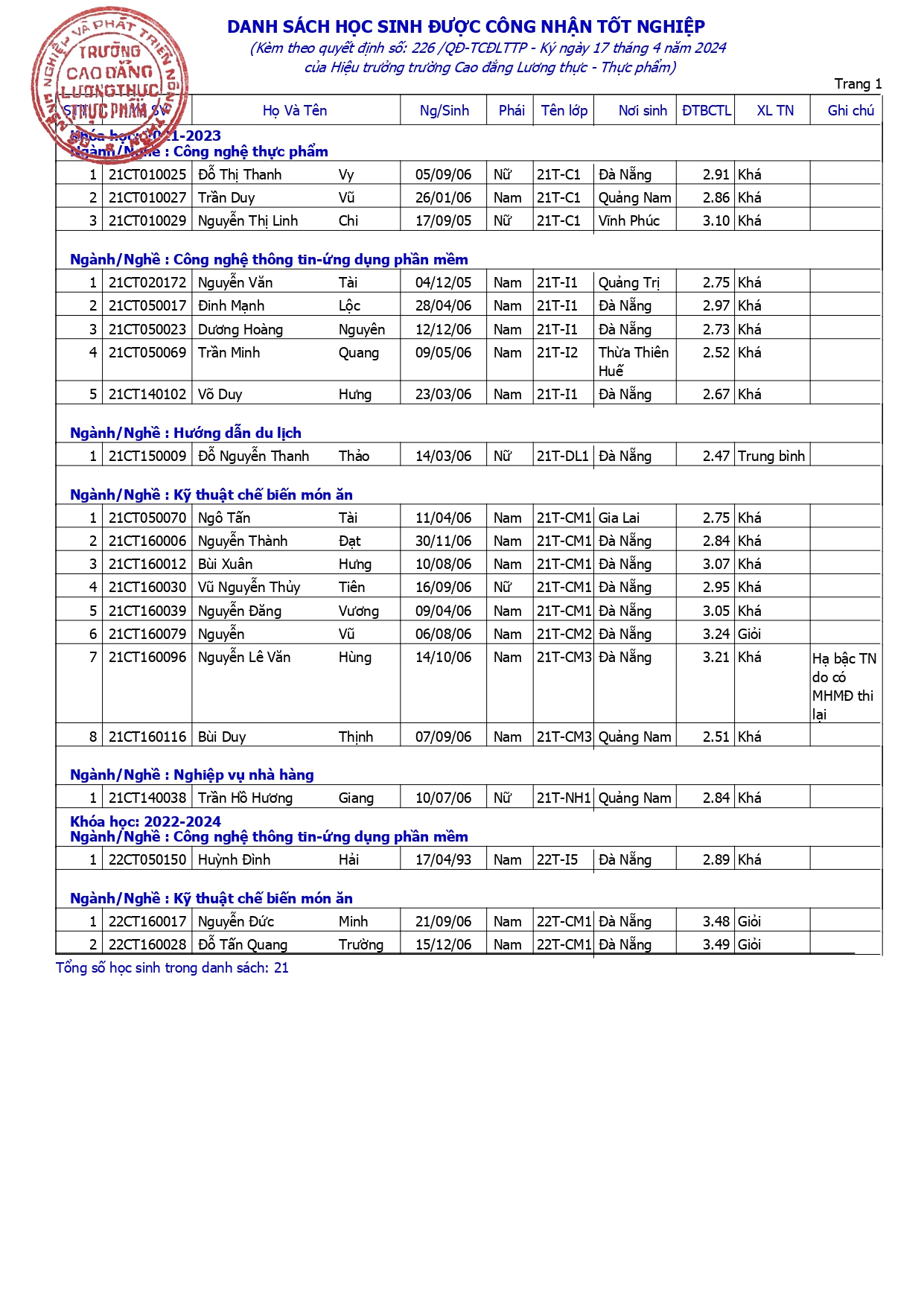 Quyết định công nhận tốt nghiệp trình độ Trung cấp hệ chính quy- tháng 04 năm 2024