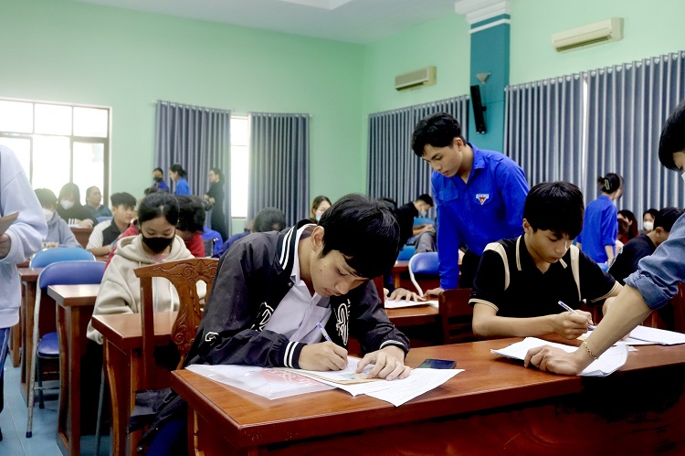 Trong suốt quá trình đón tiếp, hàng chục sinh viên tình nguyện cùng Ban đón tiếp nhà trường đã tích cực hỗ trợ các tân học sinh và phụ huynh. Băng rôn, khẩu hiệu được treo khắp sân trường, tạo nên không khí hứng khởi và chào đón. Các em và phụ huynh nhận được sự hướng dẫn chi tiết về quy trình nhập học, từ việc điền thông tin trên giấy tờ, đến việc đăng ký ký túc xá. Mọi thắc mắc đều được giải đáp nhanh chóng và rõ ràng, giúp các em hoàn thành thủ tục một cách thuận lợi nhất.