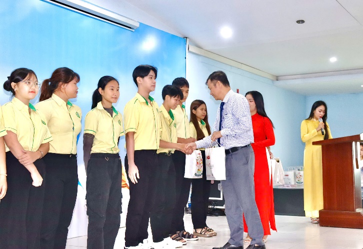 HSSV nhận giấy CN học bổng, quà của Công ty tai buỗi Lễ