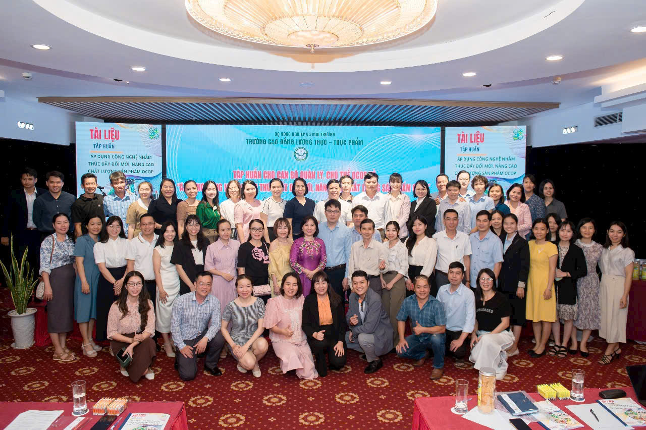 Tổng kết các lớp Tập huấn nâng cao kiến thức, kỹ năng cho các chủ thể OCOP về liên kết chuỗi giá trị gắn với vùng nguyên liệu địa phương và ứng dụng công nghệ mới nhằm phát triển sản phẩm OCOP.Thực hiện Chương trình Mục tiêu quốc gia xây dựng nông thôn mới được Bộ Nông nghiệp và Môi trường giao, Trường Cao đẳng Lương thực – Thực phẩm đã phối hợp với Văn phòng Điều phối Nông thôn mới Trung ương tổ chức các lớp tập huấn nâng cao kiến thức, kỹ năng để phát triển sản phẩm OCOP cho các chủ thể OCOP, các bộ quản lý chương trình OCOP, các đơn vị tư vấn OCOP các tỉnh miền Trung trong thời gian vừa qua tại Đà nẵng, Huế, Quảng Ngãi.